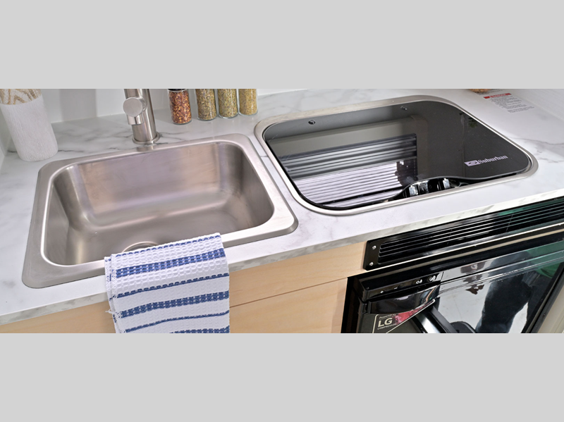 nuCamp RV TAB 320 LITE teardrop trailer Std. Model highlights: Two Burner Stove ... more about TAB 320 LITE Std. Model